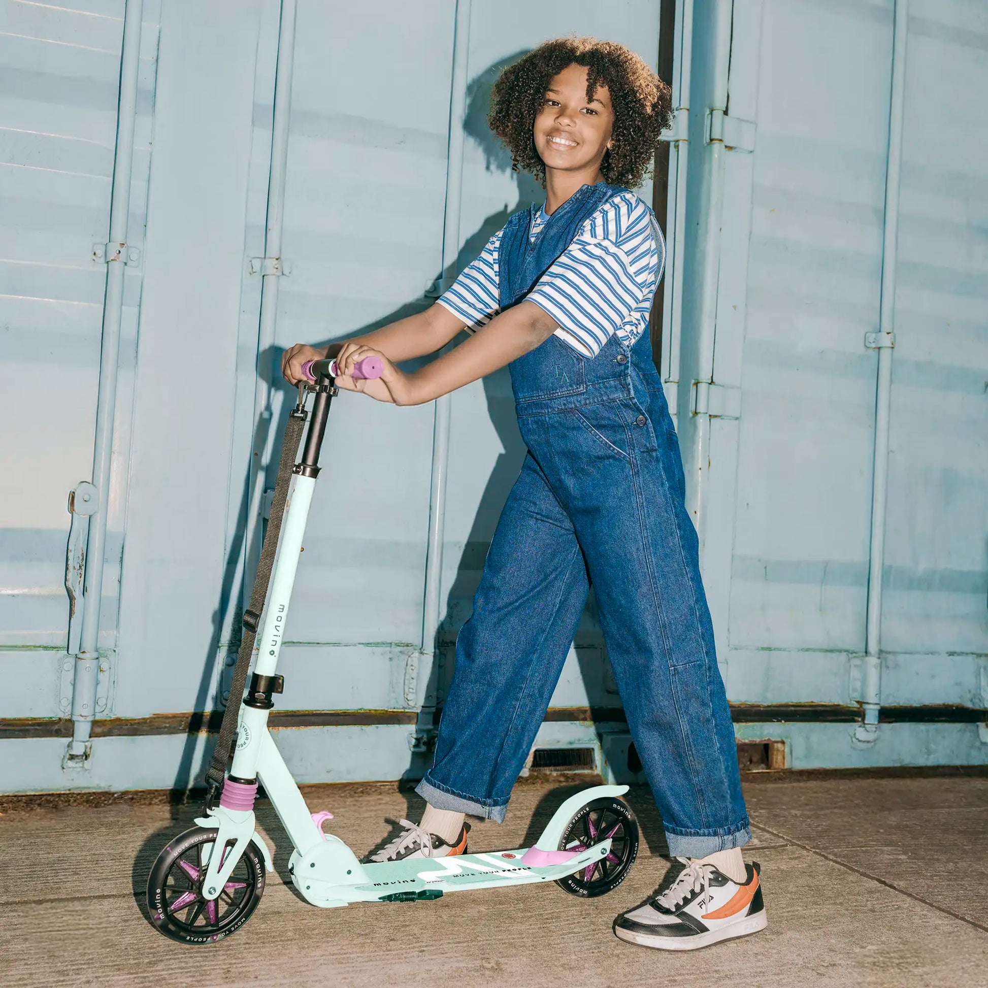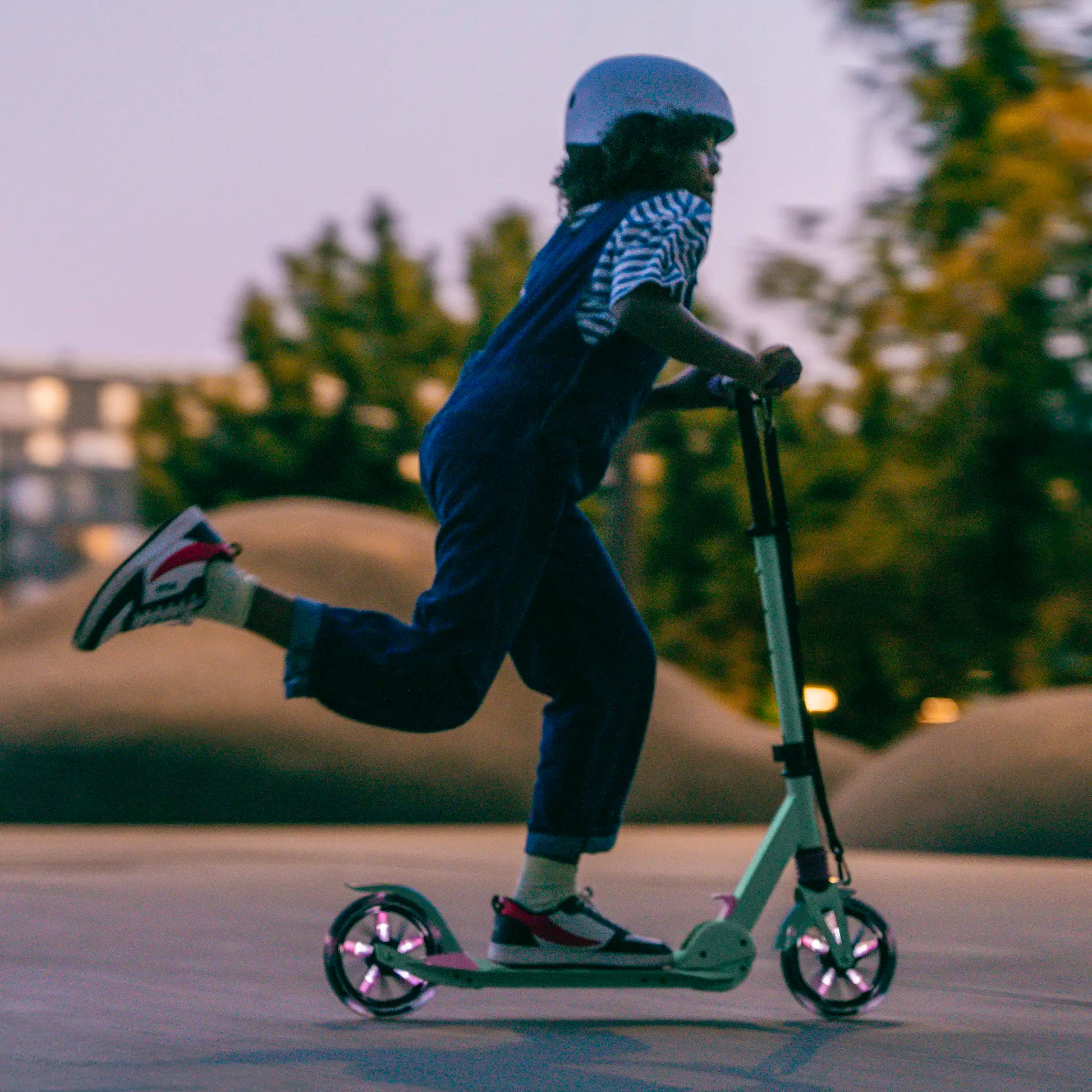 Equipped with 180 mm wheels, this scooter responds instantly. It is lightweight, dynamic, and precise to handle – perfect for city commuting, getting to school, or just having fun. Full control and great pace in every situation.