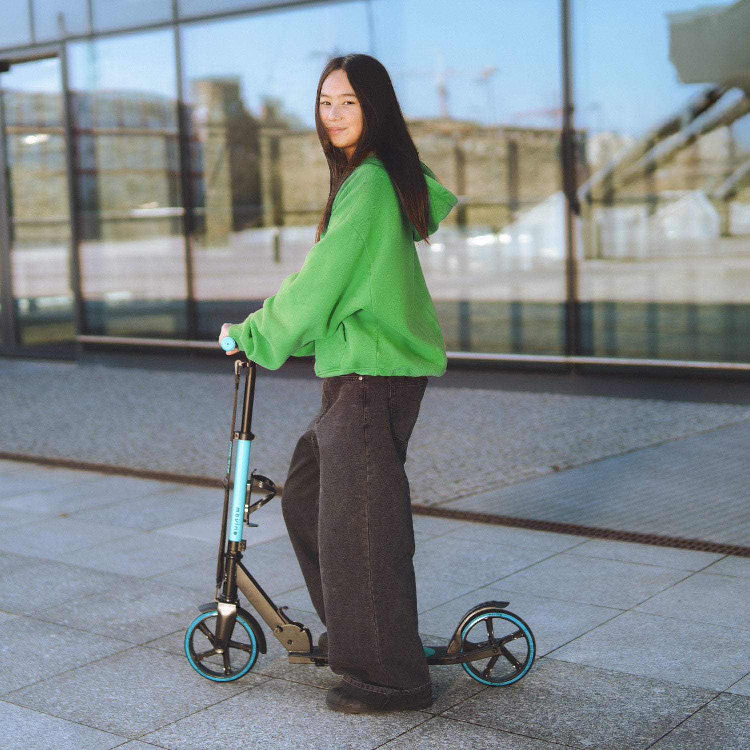 Children—both older and younger—need to get to various places every day. They can reach many of them independently on the Movino Infinity scooter! Its lightweight construction, low-hanging deck, and large wheels ensure excellent mobility and a daily, healthy dose of exercise.