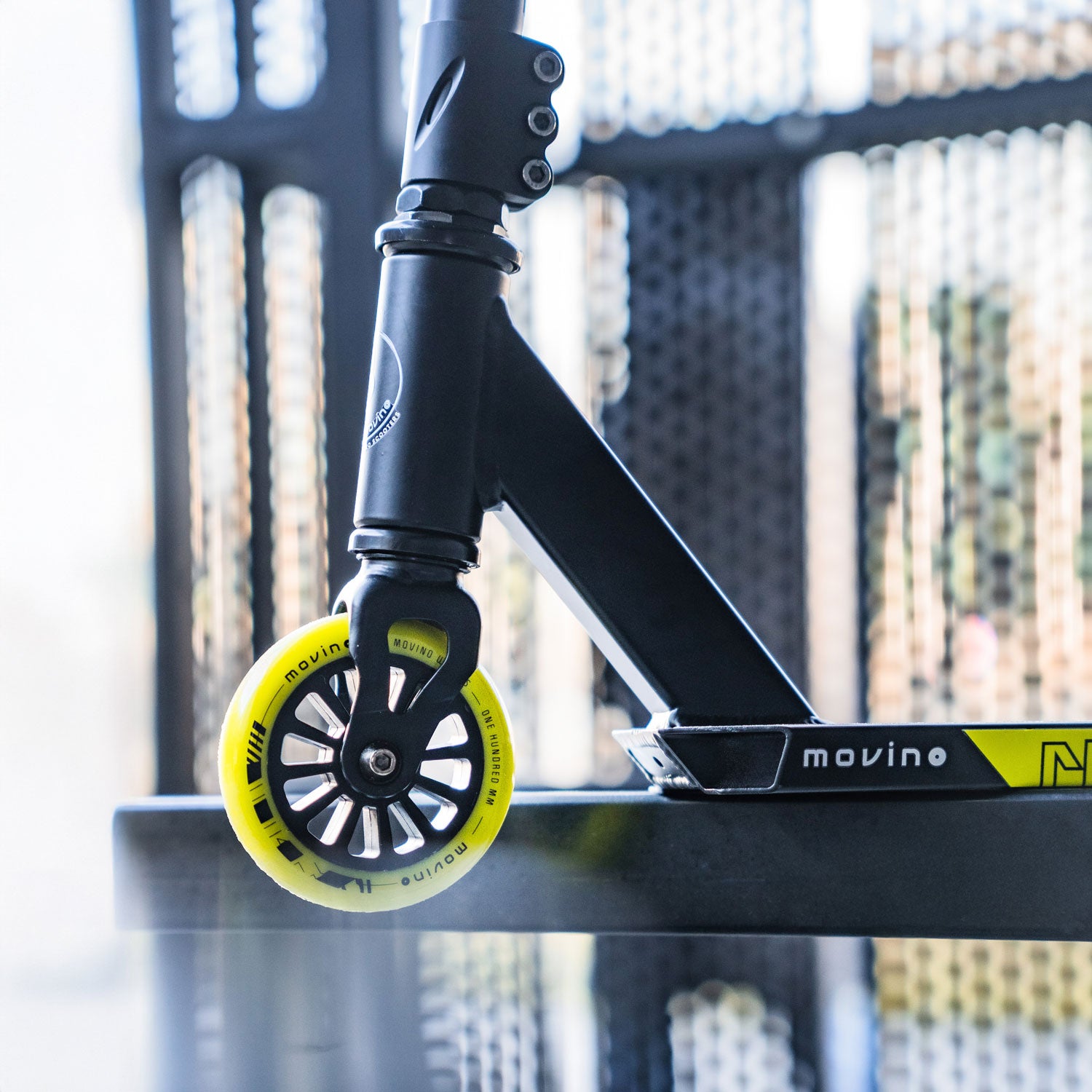 We know that a scooter for beginners can combine high quality and a design that isn't boring, so we created it – the Movino Nitro Lemon! The experience gained through constant collaboration with talented and award-winning riders has resulted in pairing a lightweight, agile, and stable deck with fast and comfortable 100mm wheels featuring ABEC 9 bearings. This combination is eager to take off and ensure safe landings!