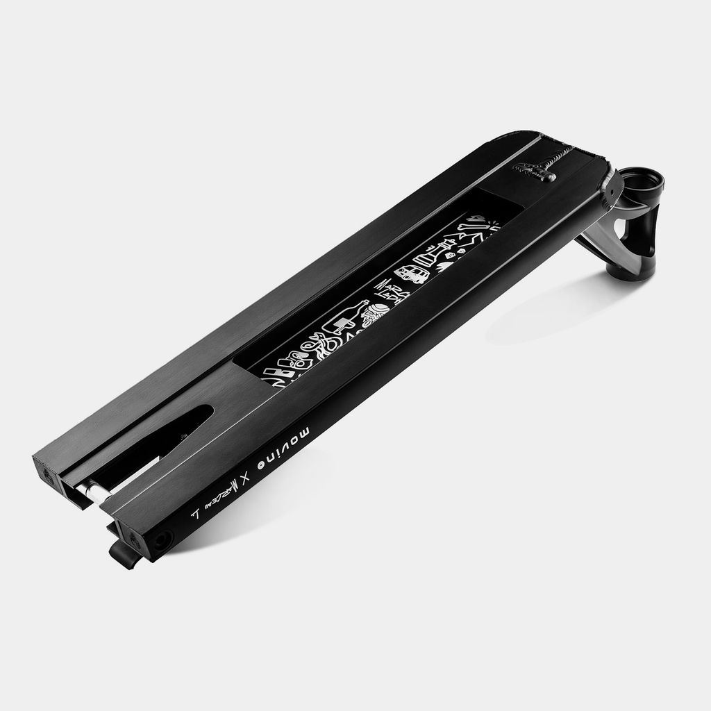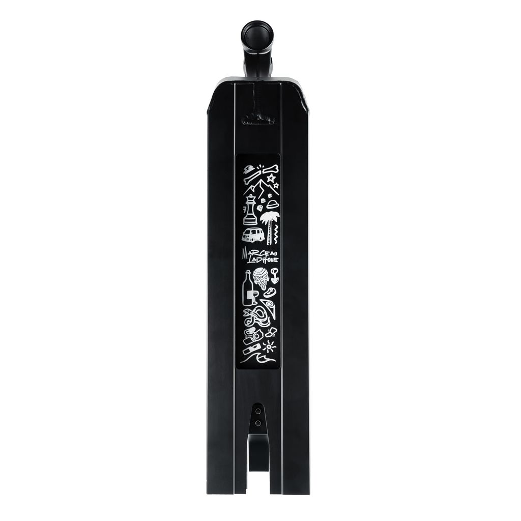 The deck is made of high-quality aluminium for the best riding experience. Compatible with the integrated IHC compression system, with square ends and an opening at the bottom for the correct balance of the scooter, it allows you to overcome all obstacles and perform complicated tricks. Its interesting graphics, thematically reminiscent of Marceau’s travels, are striking.