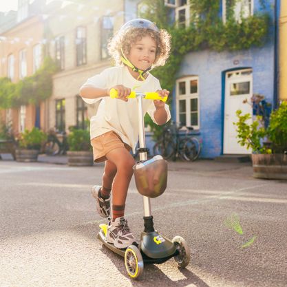 The adjustable handlebar makes it easy to adapt the scooter to the child’s height, so it can be used for a long time. The right handlebar height supports a natural posture and confident steering. The adjustment system works intuitively and locks the handlebar securely, ensuring stability and safety while riding.